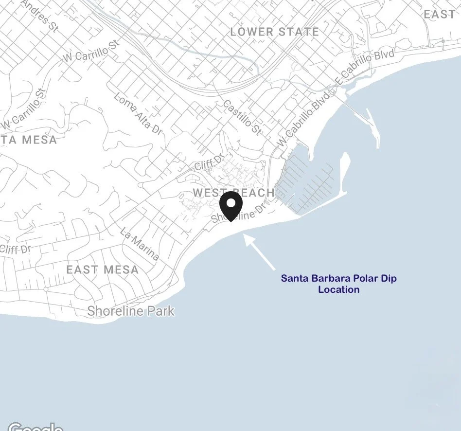 The NEW location for Polar Dip 2026 is at Ledbetter Beach on Shoreline Drive in Santa Barbara, California.